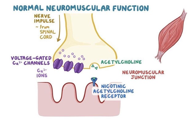 In most cases, myasthenia gravis (MG) is a disorder that develops due to an immune system attack (autoimmune) against the acetylcholine receptor. This prevents the energy packets (acetylcholine) from attaching to the receptor, causing muscular weakness and excessive fatigue. This may affect muscles associated with the eyes, face, throat, esophagus or legs. The disease process is known to develop in two different groups of patients; very young dogs and older dogs.